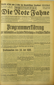 | Bildquelle 1: Mit ihrer im Programm zur nationalen und sozialen Befreiung des deutschen Volkes erhobenen Forderung nach Sowjetdeutschland erwies sich die KPD einmal mehr auch öffentlich als verlängerter Arm Moskaus und stieß damit erhebliche Teile der deutschen Bevölkerung vor den Kopf. In dieser Zeit bildete sich unter August Thalheimer und Heinrich Brandler eine KPD Opposition auch KPDO und von den stalintreuen Kommunisten KP Null genannt. Sie legten einen auf deutsche Verhältnisse angepassten Gegenentwurf der Öffentlichkeit vor. Auch links von der SPD kam es zu einer Abspaltung, der SAP, in der Willy Brandt eine Rolle spielte |