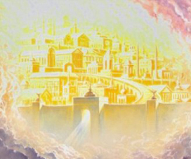 es wird aus dem Himmel eine neue Stadt herab fahren: das Neue bzw. Himmlische Jerusalem. Schon nach den Propheten des Alten Bundes bestehen die Grundsteine und die Stadtmauer aus Edelsteinen, die Tore aus zwölf Perlen und braucht die Stadt weder Sonne noch Mond, weil Gott mitten unter den Menschen als ihr Licht wohnt. Alle Leiden des Erdenlebens müssen vor der Freude verblassen, die sie dort erwartet, denn Gott: „wird alle Tränen abwischen von den Augen.“ |