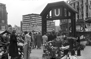 Bildquelle 1: Bis zur Währungsreform blühte der Schwarzmarkt besonders am Potsdamer Platz, wo der amerikanische (Kreuzberg) und britische Sektor (Tiergarten) auf den sowjetischen (Mitte) stießen. |