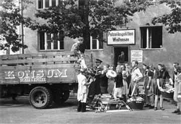Bildquelle 2: Im sowjetischen Sektor verteilte die dort zuständige Volkspolizei die auf den Schwarzmärkten beschlagnahmten Waren und Güter vielfältiger Art wie hier in Weißensee an die Konsumverkaufsstellen für den regulären Verkauf.