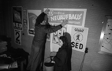 | Bildquelle 3: Die SED hatte bei den Oktoberwahlen 1946 in der Vier-Sektoren-Stadt Berlin die absolute und relative Mehrheit verfehlt, so dass eine Magistratskoalition aus CDU und SPD gebildet wurde. Die SPD bestand in Groß Berlin anders als in der umliegenden Sowjetzone neben der SED fort. |