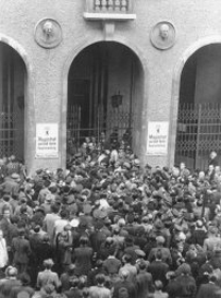 rechts Bildquelle 17: Das nach dem überraschendne Umzug der prowestlichen Polizeiangehörigen nur noch für den Ostsektor zuständige Präsidium der Volkspolizei am Alexanderplatz in Mitte |